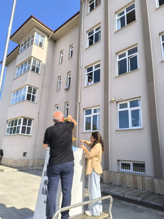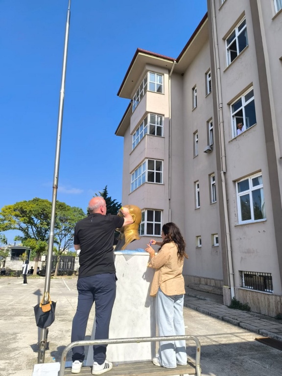 Görsel sanatlar öğretmenimiz Arzu DEMİRBİLEK ve Beden Eğitimi öğretmenimiz Aydın MISIR tarafından Atatürk büstümüz boyandı.